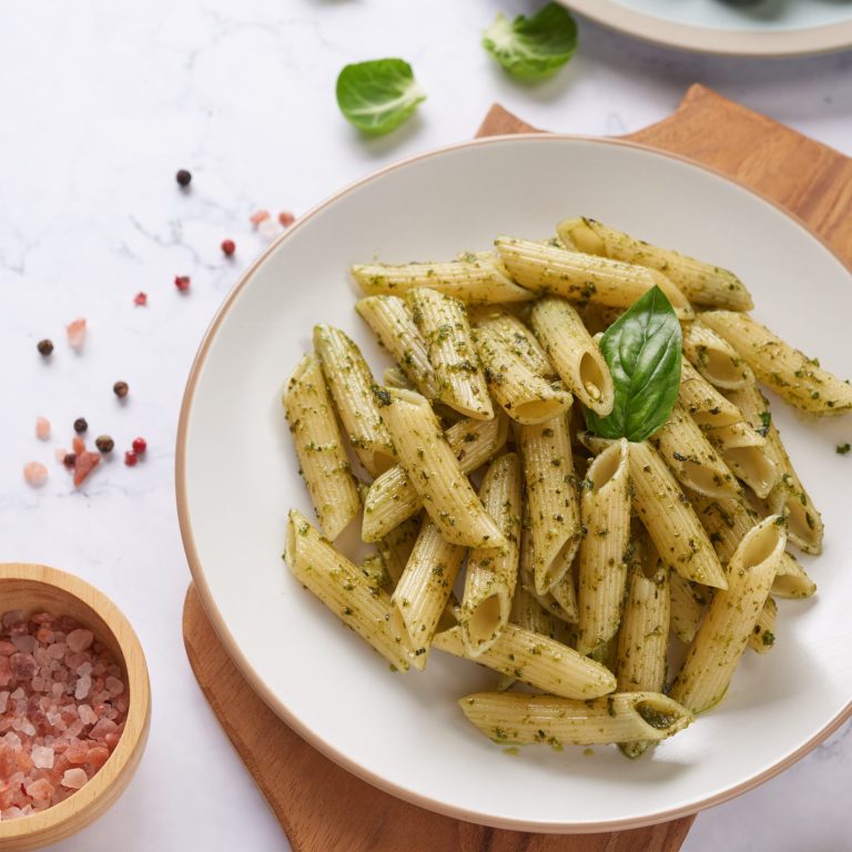 Pasta con pesto di aglio nero, zucchine e pomodorini